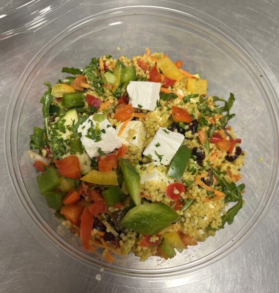 Ingredienten: paprika, courgette,cranberry, lente uit, erwten, wortel, rucola en feta.